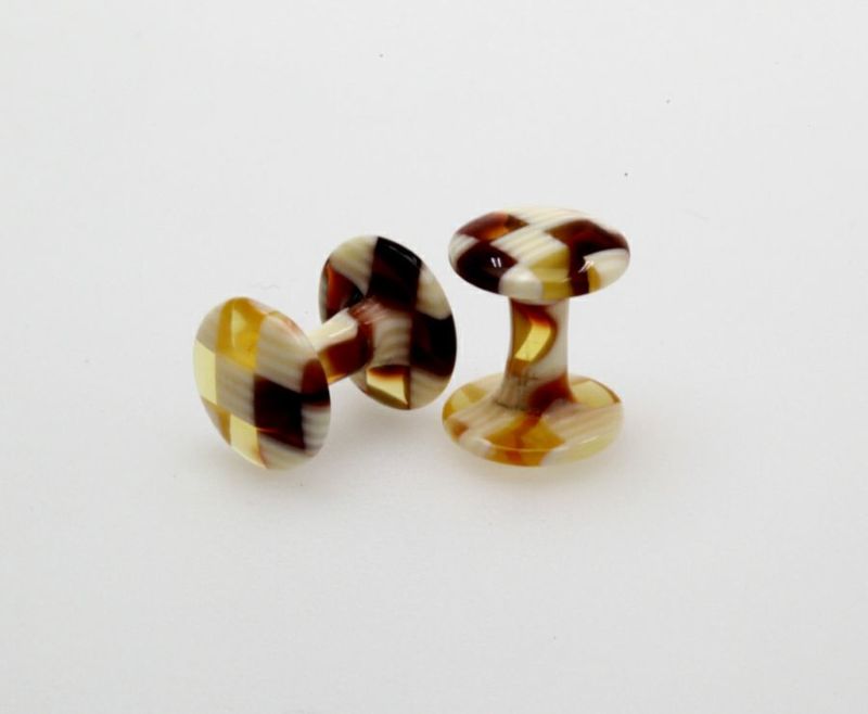 今までに無い色彩豊かなアセテートシートから、高度な職人技で削り出して作られたカフスボタン。