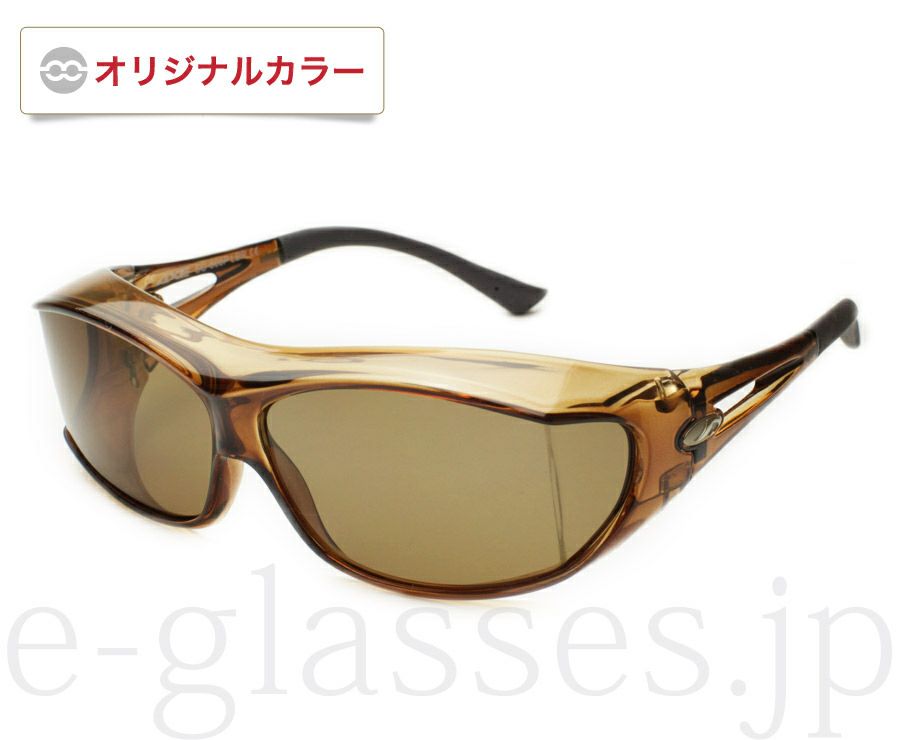 メガネ着用者向け、薄いカラーでも紫外線・青色光線をカットするハイドカラーレンズのオーバーサングラス。メガネ無しでカバーサングラスとしても使用できます。