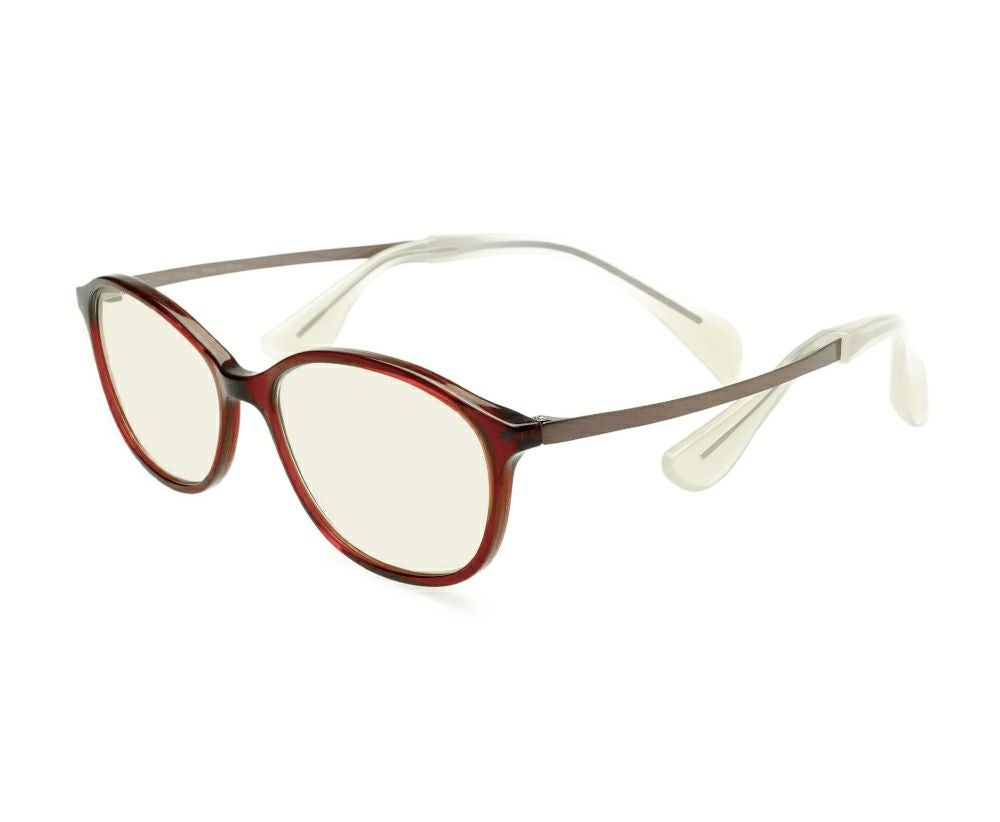 テンプル内側の特殊なモダンが顔にフィットして、鼻の上に浮くように掛ける構造により、鼻にメガネの重量が掛かりません。またメガネ全体の重さはサイドのモダンで側頭部全体に分散するため、長時間かけても負担になりません。